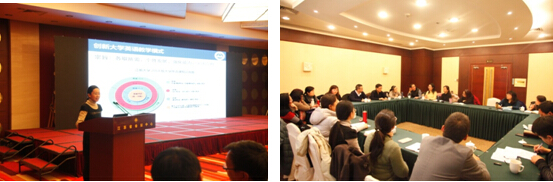 大外基础部副主任宣泠老师作为代表在会上介绍了我校“创新教学模式,整合教学平台,将现代化信息技术与大学英语教学相融合”的若干做法。秉承“各取所需,个性发展,强化能力,突出应用”的教改理念,我校大学英语尊重语言学习的规律,为不同水平、不同需求的学生提供不同层次、不同内容的菜单式课程,并充分利用信息技术,整合了集课程平台、自主学习平台、在线测试平台和教学管理平台于一体的系统应用平台,力争做到学习环境泛在化、教学资源多样化、学习内容个性化、学习评价多元化、教学活动协作化。宣泠的发言得到了与会代表的一致点赞。