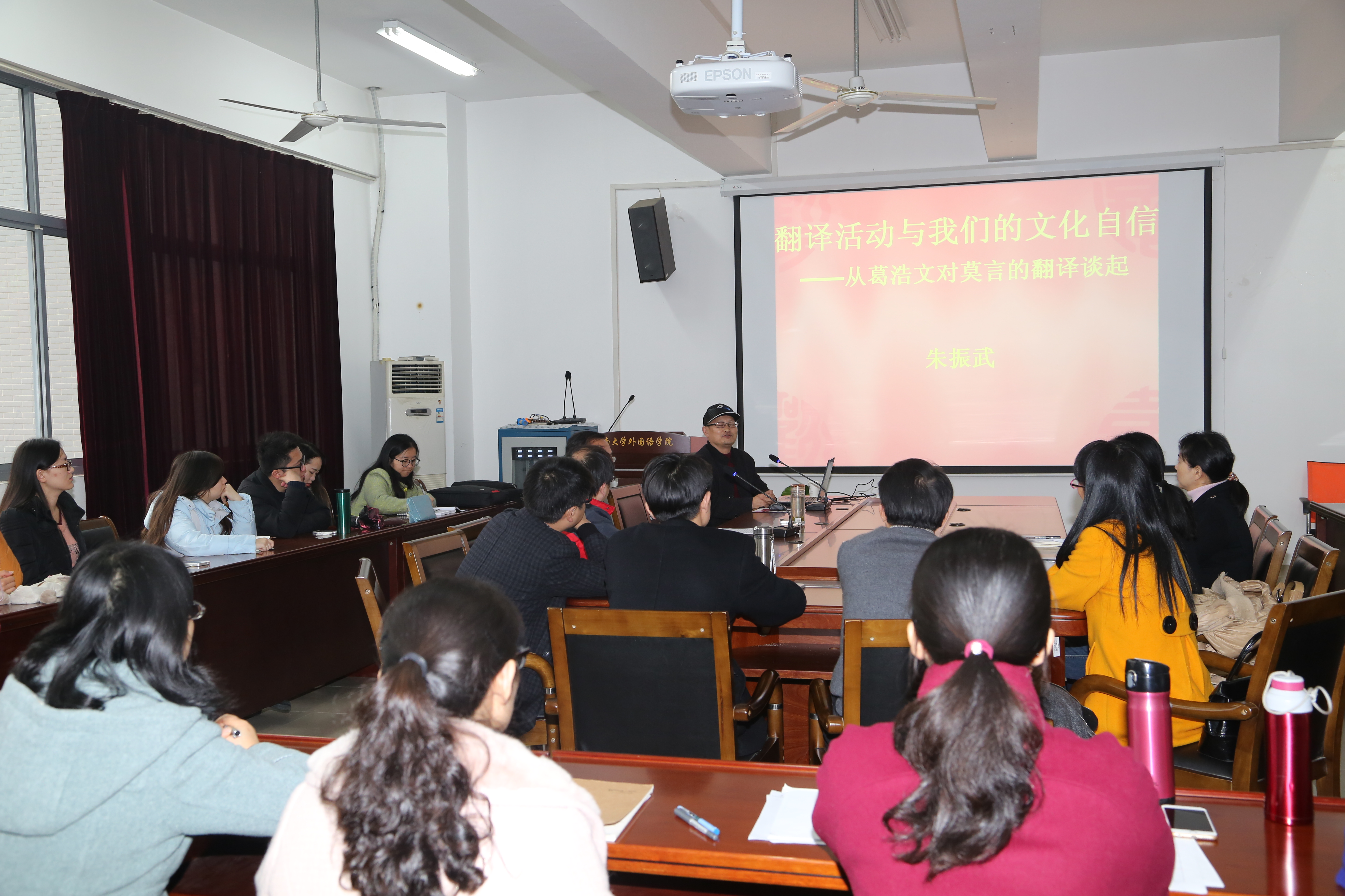 大会议室做了题为“翻译活动与我们的文化自信—从葛浩文对莫言的翻译谈起”的学术讲座。方文开副院长主持了讲座,91社区