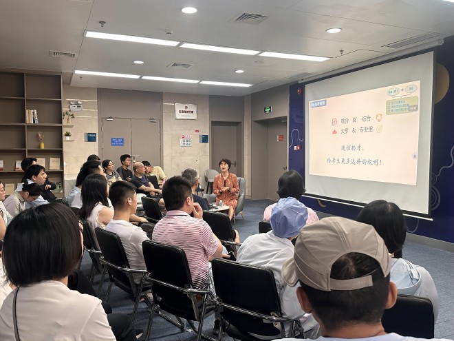签约仪式完成后,进行了结对共建后的第一次活动——邀请校教务处副处长、招生办公室主任戴云为妇幼保健院的高考学生家长进行了高校招生政策解读与志愿填报指导讲座。讲座受到了考生和家长们的热烈欢迎和一致好评。