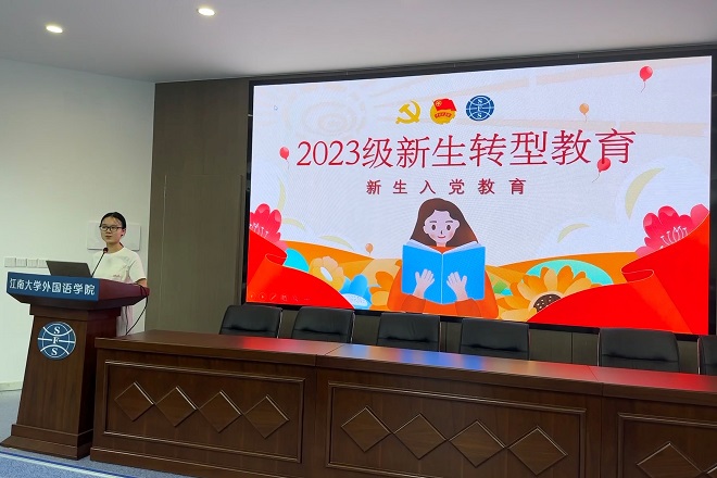 2023级新生入党启蒙教育在君金报告厅举行。学院英语本科生党支部书记徐晨玥担任主讲人,全体2023级本科新生参与此次活动。
