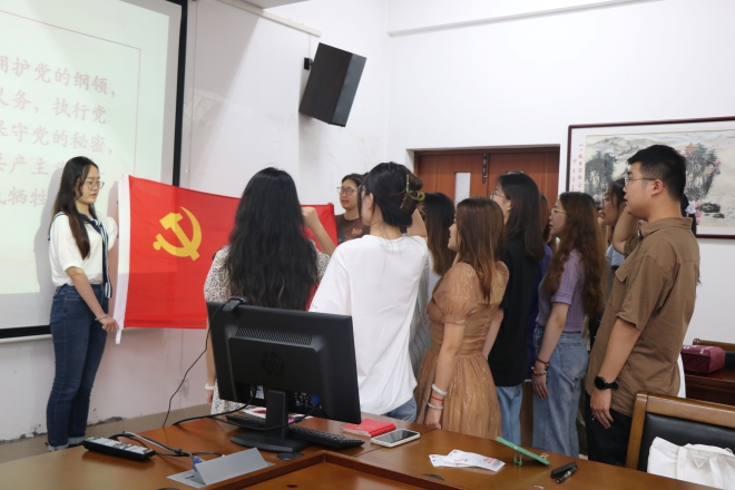 党委副书记刘伯贤、关工委常务副主任鲍国庆、委员吴艳敏、分团委书记陆芳出席宣誓仪式。本次活动共20名新发展党员参加,分团委书记陆芳主持会议。