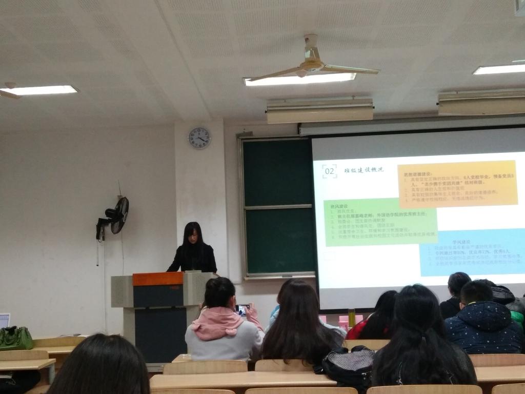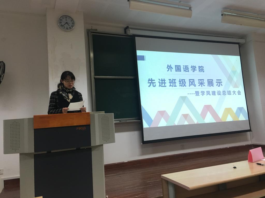 于2016年11月9日举行了 2016年度外国语先进班级风采展示大会。院党委副书记赵莹、调研员张晓虹老师、 辅导员王琰玲、刘琦老师等学院老师及全院主要学生干部参加了此次大会。