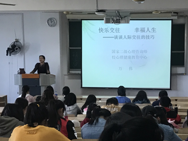 2018年10月10日下午14点,一场主题为“快乐交往 幸福人生——谈人际交往的技巧”的心理讲座在二教2D306如期举行。本次心理讲座由校心理健康中心专任教师、国家二级心理咨询师万伟老师担任主讲,91社区