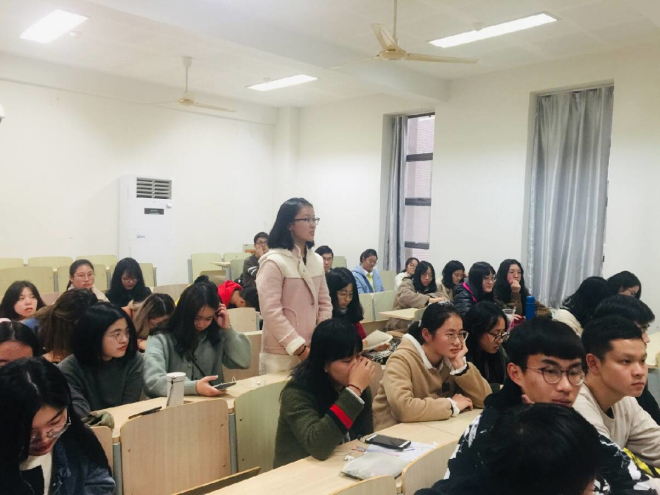 第十八届“十佳演说家”冠军等多个奖项,在演讲和主持方面十分有经验。童红燕学姐首先强调了口才的重要性,并从活动主持、话题演说、项目答辩等三方面仔细介绍了口才之于学生会的应用领域,还介绍了提升自己的口才能力的技巧和方法。此外她给出了一些克服登台紧张的实用技巧,并耐心解答了同学们提出的疑问。童红燕学姐的互动提问环节,使得整个会场气氛活跃起来,让大家都真切地感受到了口才的魅力。