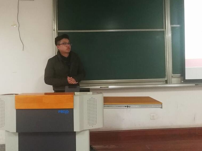 物联网工程学院的谭永强学长分享主题是“论学生干部的素质养成”。谭学长首先从学生会干部的定义切入主题,紧接着他又展开讨论了“为什么要加入学生组织”、“如何平衡学习和工作的关系”、“社霸和学霸哪个更重要”等问题,并以其自身的亲身经历和切实感受,从一个学长、前辈的角度,为我们指出:加入学生组织,可以提高我们的素质,扩大人际交往圈,提升自身的党性;但作为学生干部,我们也要平衡好学习和工作的关系,明确人生目标之后,做好自己的选择,究竟是成为“社霸”还是“学霸”。