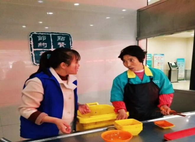 活动期间,志愿者们体会到了食堂阿姨们日常的辛苦工作,也正是因为有她们,我们每一次用餐时都能有一个良好的环境,能有干净的碗筷。妇女节之际,志愿者们真心地感谢在各个岗位中辛勤工作的每一位女性,希望她们都能受到尊重与爱戴。祝愿在食堂工作、在宿舍门口给垃圾分类等默默给师生做好后勤工作的阿姨们,都能在平凡的岗位上,在师生们的积极配合下愉快地工作。