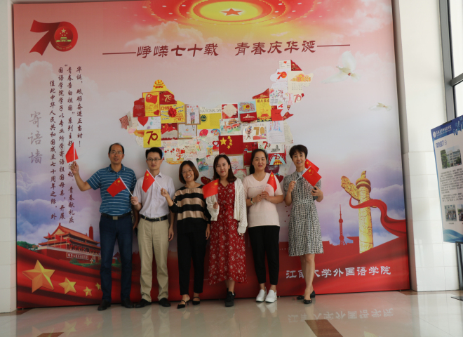 在国庆节来临之际通过系列活动以青春告白祖国。心中有大爱,心向中国红,外院师生与国旗合影,与国旗同在,以实际行动书写青春华章,祝福祖国繁荣富强。