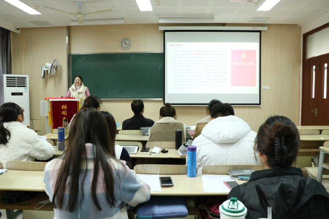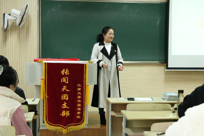 在“听听党员的故事”环节,机关退休第四党支部书记鲍国庆老师讲述了自己1971年工作、1973年入党、1974年高考入榜的经历,使我们认识到不管在什么情况下,都不能轻言放弃,而要不忘初心,砥砺前行,不断地去追求探索看似艰难的事情。鲍老师用这样一句话来形容党对她的重要性,“我有两个母亲,一个是生我养我的母亲,还有一个便是培养我扶持我的中国共产党。”鲍老师的发言充满了自己对于党的热爱与感激之情,让我们为之动容,为之钦佩。分团委书记杨艳老师从讲述一个弃学少年如何一步一步走向辉煌的故事入手,启发大家无论处在什么样的境地,都要努力奋斗,坚持到底就会有收获。然后,杨艳老师分享了她的战疫故事,启示我们怀揣着一颗纯粹的心、一颗责任担当的心、一颗奉献的心。杨艳老师为了守护疫情期间留锡的学生,往返各地,四次隔离的故事也让我们十分感动,正如基辛格曾说过:“中国人,总是被他们之中最勇敢的人保护得很好。”杨艳老师就是这样一个勇敢的人,我们从她身上学到了舍小家为大家的精神,也明白了入党需纯粹的道理。