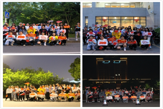 门前集合,大家手举党旗和主题举牌,在江大春暖花开的校园完成4.1公里的奔跑。