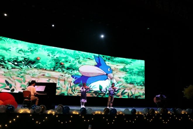 器乐节目《宫崎骏经典曲目演奏》奏响了晚会的第三篇章,校礼仪部的走秀节目《Boom Clap》在舞台上释放如火的青春;昭乐相声社的《学聋哑》与男舞《Fake love》带给我们视听上的享受。晚会在众人的合唱《2035是这样》中完美落幕。