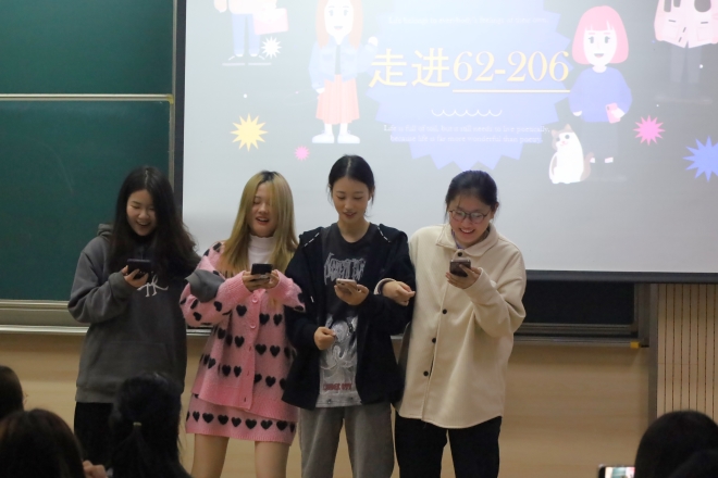 其中,62-228宿舍的同学给带来了精彩的舞蹈表演,动作柔和轻灵,舞姿优美;接着62-206宿舍进行了四人合唱改编版的吉祥四宝,画风诙谐有趣;62-213宿舍与74-118宿舍的同学们分别合唱了《岁月神偷》与《渐暖》,歌声动人,青春向上;87-112宿舍的同学精心制作的介绍宿舍的小视频,以及74-103宿舍的同学自制了“一笑倾城”MV等。这些精彩的表演展示了宿舍美好有趣的生活。