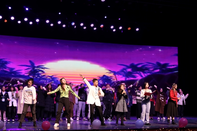 2022年迎新晚会在文浩馆如期举行,学院党委书记史志洪、院长方文开、党委副书记刘伯贤、副院长顾琦一、副院长朱义华、副院长谢竞贤、日语系主任张鹏、分团委书记陆芳、班主任及辅导员出席迎新晚会。学院各年级学生热情参与,师生同乐,欢聚一堂。