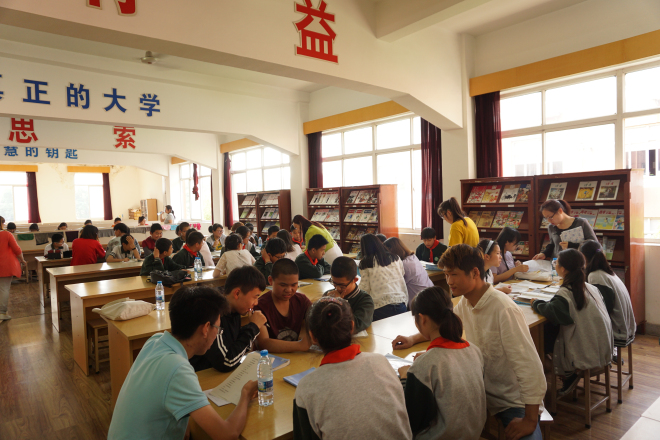 仪式后,在金星中学图书馆进行了第一次星期三课堂活动。青协志愿者们同金星中学学生们聊学习、聊理想、聊人生。不仅针对性的进行英语提高教学;贴心指导金星学生调整学习方法;主动了解、尽力解决学生们学习生活上的困难。下午5点,本次“星期三课堂”活动圆满结束。