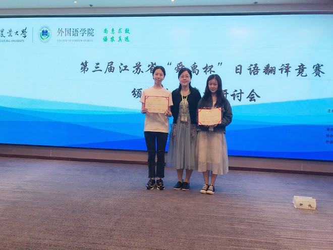 张林薇,陆蓉两位同学在比赛中分别获得日译中组二、三等奖。