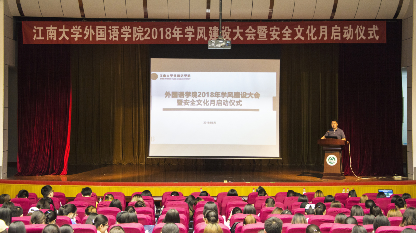 2018年学风建设大会暨安全文化月启动仪式于5月31日晚在南活报告厅如期举行。校学工处副处长汪双喜、院党委书记黄城芳、分团委书记杨艳、辅导员张圆、黄颖以及15级、16级、17级全体学生到场参加,大会由院党委副书记刘伯贤主持召开。