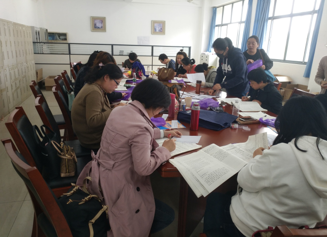 大外办公室进行紧张的阅卷工作。各阅卷老师集中阅卷、认真细致,公平公正,争取尽快完成分数统计校对,圆满完成考试后续工作。