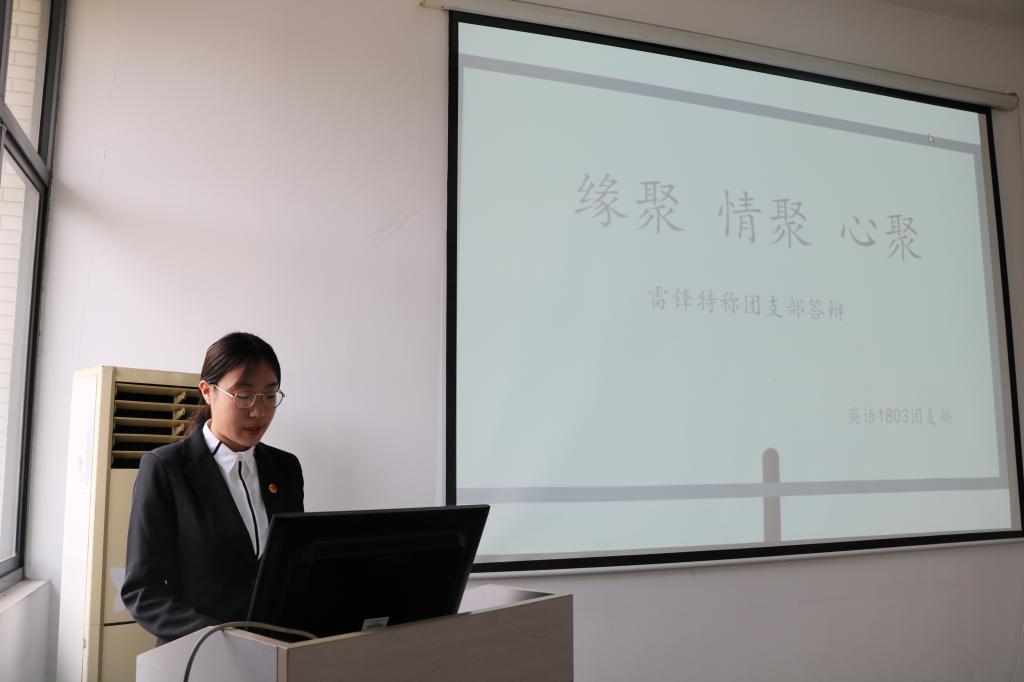 “张闻天特称团支部”、“雷锋特称团支部”答辩会于A433顺利完成。院分团委书记杨艳、分团委副书记张圆、辅导员黄颖以及上届张闻天特称团支部团支书王闰超出席了答辩会并担任评委。5月10日下午,特称团支部交接仪式于A349如期举行。校团委宣传部部长刘凡、91社区