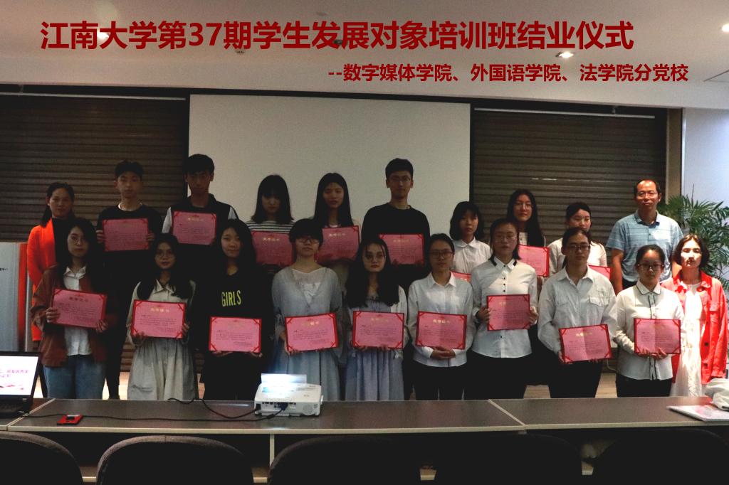 邹月、于添添、胡自威、罗品辉、马金鑫等五名学员被评为优秀学员,刘伯贤副书记为优秀学员颁发证书并合影留念。结业仪式在数媒学院党委副书记副院长陈祎老师的讲话过后落下帷幕。