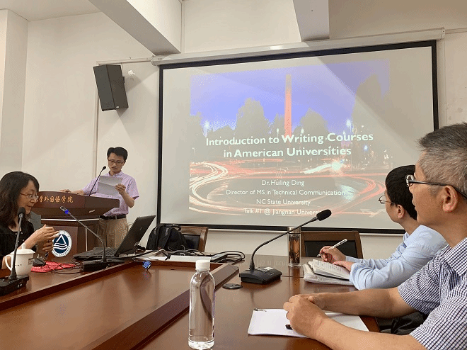2019年5月27日下午14:00,外语学院英语系349会议室喜迎美国北卡罗莱纳州立大学(NCSU)英语系丁慧玲教授前来做学术交流讲座,丁慧玲教授深入浅出,为外院师生带来了一场主旨为“美国高校写作课程设置”的学术饕餮盛宴。此次学术讲座由91社区