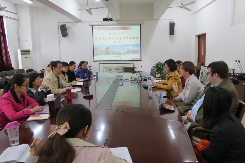 1111日,弗吉尼亚联邦大学许耀英教授团队一行五人前来91社区 交流访问。龚晓斌院长热情地接待了来宾并发言致辞,部分骨干教师参加了座谈。许教授的团队成员分别介绍了各自感兴趣的研究问题。双方就科研项目合作、相互访学交流、远程博士生培养计划等进行了热烈而坦诚的讨论。教师们认为与国外学术团队合作的探索与尝试有利于双方开拓思路,发现研究热点,共享优质资源,推动教师职业发展。