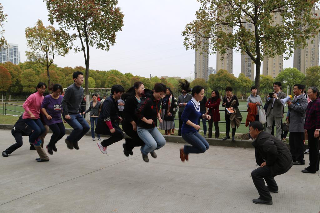 运动会设计项目四大项,分别为:动力火车、击鼓颠球、绕场400米竞走和团体跳绳等。每个项目教师都积极参加,努力拼搏,为团体荣誉而战。经过90分钟的拼搏。基础部以优异的成绩夺得本届运动会四项团体赛中的三项(动力火车、击鼓颠球、团体跳绳);日语行政代表队获得400米竞走冠军;拓展部代表队以18.5秒的好成绩在动力火车项目中与基础部并列第一;英语系以其报名积极、参加人数众多而获得本次比赛中的最佳组织奖。