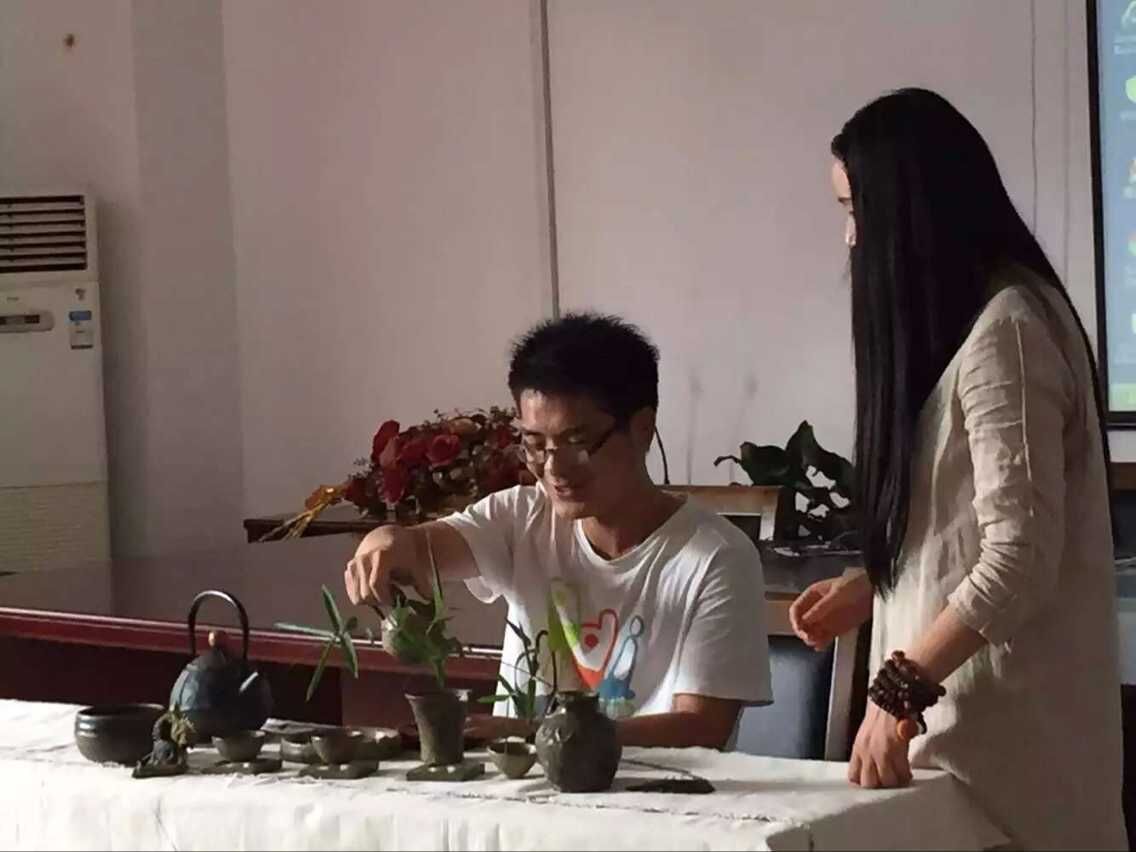 汪老师用ppt详细讲解了中日韩茶道的异同,使在场的同学深刻领会到茶道所传递出的禅境,并加深对生活、自然的领悟。汪老师还结合自己长期的茶文化交流经验,告诉同学们日本与韩国的茶道重视形式,但是内容很空洞,中国的茶艺虽没有日韩那么复杂,但是使观众更能产生一种大气的感觉,与其说重其形式,不如说在做茶道时更重视自己内心的感悟,在那行云流水的步骤中,平静自己的内心,感悟自己周边的一切。