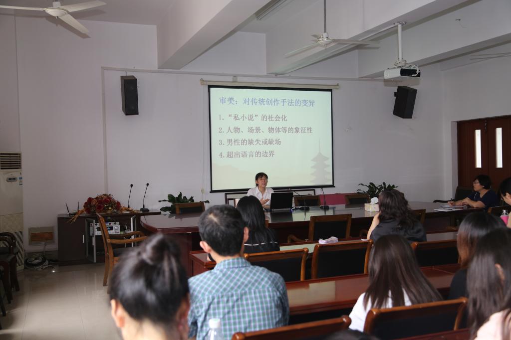 在此次讲座中,叶教授围绕“家庭、伦理与审美”,对日本现当代女性作家的文学创作进行了深入浅出地阐述。叶教授首先谈到从80年代开始,“女性时代”已经到来,因此从女性作家的文学创作来看日本时代变化、社会发展和女性地位的变迁就非常的有必要。之后叶教授分别从“家庭”、“伦理”和“审美”三个角度向师生们讲述当今时代日本女性作家的文学创作。在近两个小时的讲座过程中,叶教授旁征博引,幽默风趣,既有具体的作家作品介绍,也有对文坛现象、文学理论的阐述,非常生动活泼。