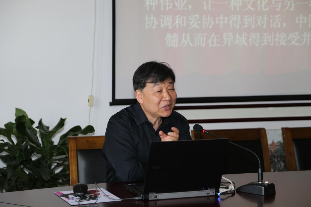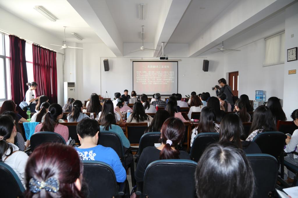 大会议室(A349)做了题为“文化自觉与中国经典英译”的学术讲座,讲座由翻译研究团队负责人王金安教授主持,学院领导和师生共50余人参与了本次学术活动。