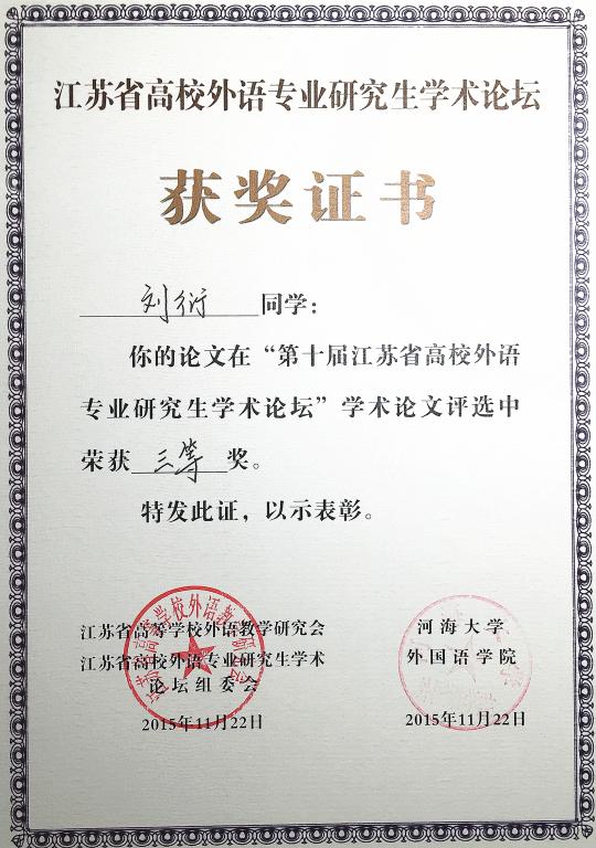 2015年11月20至22日,由江苏省高等学校外语教学研究会和江苏省高校外语专业研究生学术论坛组委会主办、河海大学91社区