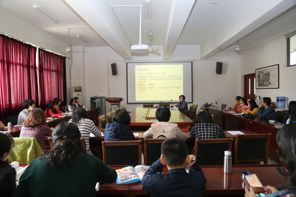 李卓教授从日本吸收中国文化的四种形态即积极吸收模仿中国文化、曾经吸收中国文化,半途放弃、吸收改造中国文化和拒不接受等几个方面向师生们讲述了中日文化的共性与个性。李教授列举大量具体的数据和实例,结合自己的亲身经历,说明了日本家族制与中国家族制的共性与个性,并特别讲述了日本的贵族制中家缘关系大于血缘关系对于日本优秀文化传承的重要意义。