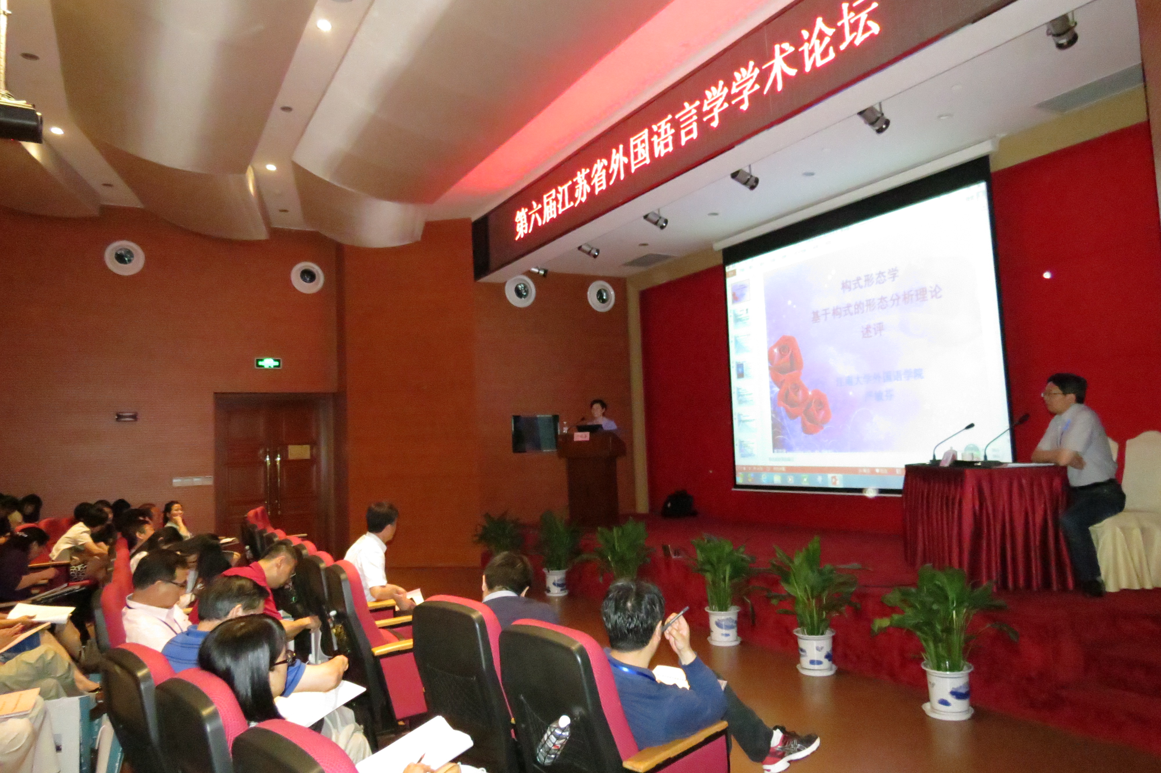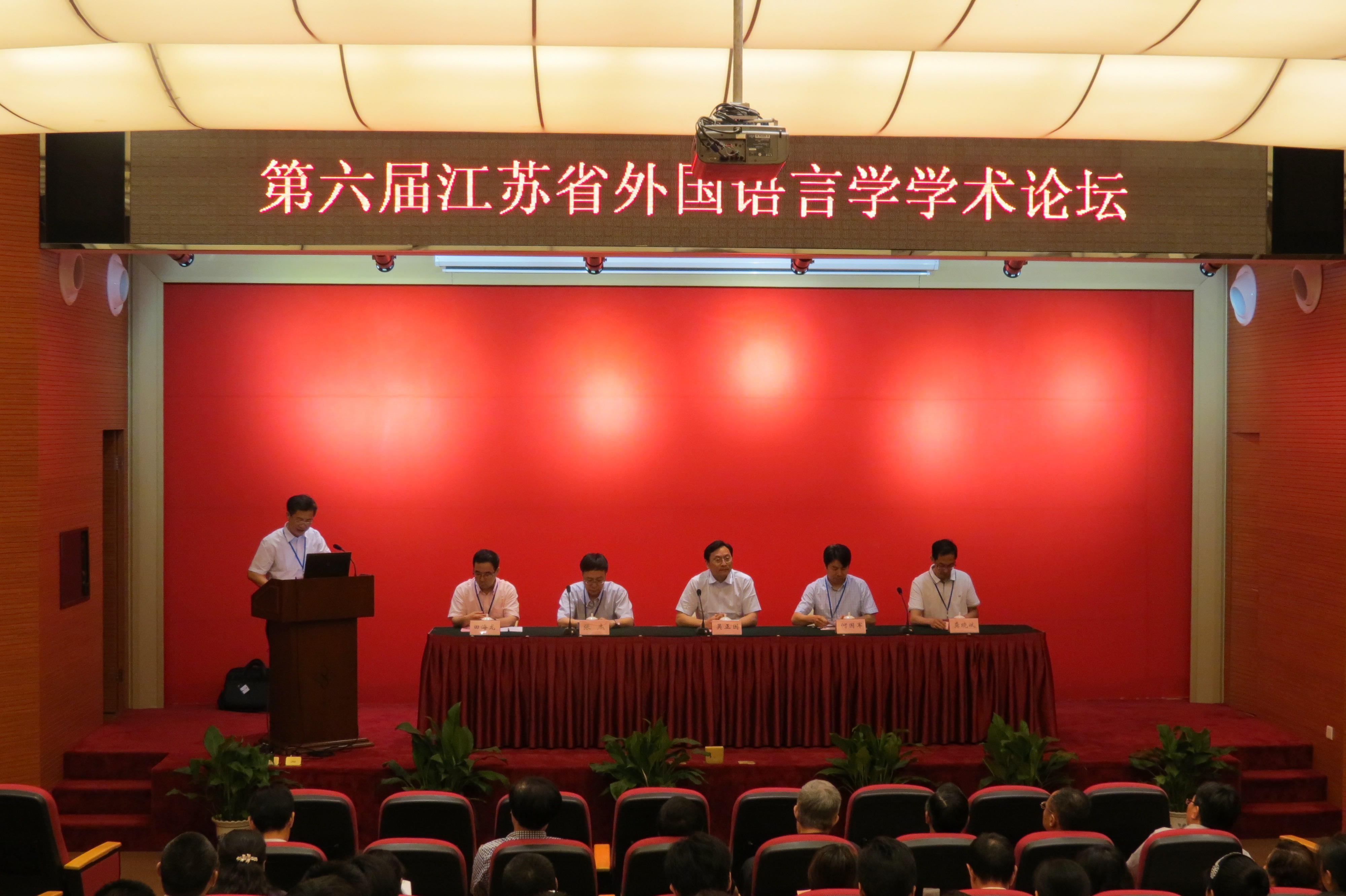 2014年5月30日至6月1日,由江苏省外国语言学会主办,91社区 承办的“第六届江苏省外国语言学学术论坛”在无锡举行。91社区 党委常委、校长助理吴正国、江苏省外国语言学会会长张杰教授、副会长陈新仁教授、江苏省社科联何国军处长、91社区 院长龚晓斌教授以及40多所来自省内外高校的专家学者及青年学子近130名代表出席了本次论坛。 本次论坛围绕“当代外国语言学理论与应用”的主题而展开,话题涉及句法学、语义学、语音学、音系学、语用学、认知语言学、社会语言学、二语习得、外语教学、外语测试、语篇分析、心理语言学、语言哲学等领域。南京大学91社区 陈新仁教授、天津外国语大学田海龙教授、华东师范大学91社区 梁超群教授、91社区 严敏芬教授等多名专家学者作了主旨发言。 在分会场讨论中,与会代表围绕“应用语言学”,“认知语言学”,“语用、功能、符号语言学”三个不同方向的理论与应用进行讨论和交流,南京大学91社区 徐昉教授、南京师范大学91社区 倪传斌教授、南京师范大学91社区 王永祥教授等30名与会代表交流了论文,91社区 荆兴梅等4名教师作了小组发言。