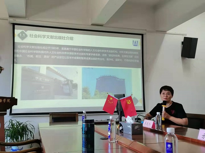 2021外语学科系列讲座之八“中华学术外译项目历年情况分析及2021年申报政策解读”在学院A349会议室举行。本次会议邀请到社会科学文献出版社国际出版分社社长李延玲为91社区
