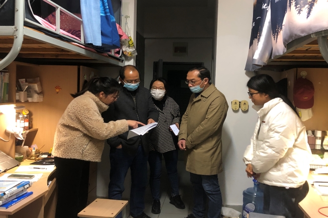 高度重视疫情防控工作,严格落实学校疫情防控的各项要求。通过走访宿舍听取学生心声,学院领导和老师进一步了解了返校学生的情况以及实际需求,为接下来的教学工作与疫情防控工作的稳步推进打下了良好基础。