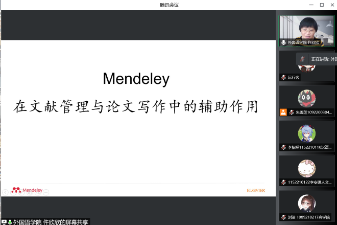仵欣欣教授线上主讲“文献管理工具Mendeley在论文管理与写作中的辅助作用”,会议持续近一小时,来自各个学院的120余名同学线上参与,共同了解学习Mendeley。
