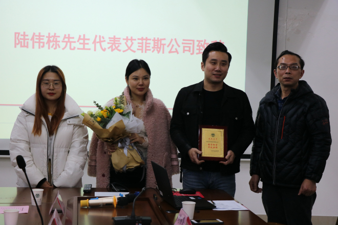 分团委书记杨艳、教师胡燕萍、江苏艾菲斯医院管理有限公司代表陆伟栋、无锡安达汽车综合性能检测有限公司代表陈志刚以及受助学生参加颁奖仪式。颁奖仪式由学院分团委副书记张圆老师主持。