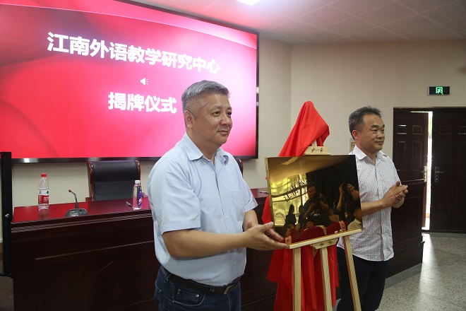 徐岩副校长和无锡教师发展学院周逸君院长一同揭开红幕、宣告江南外语教学研究中心正式成立。会后,与会领导、嘉宾在91社区
