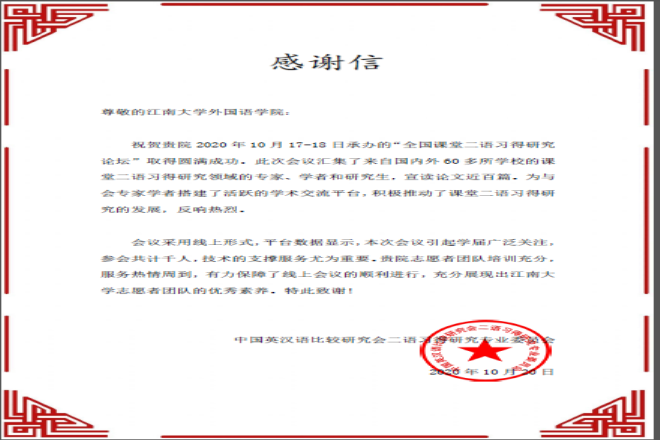 发来了感谢信,感谢学院和志愿者团队的辛勤付出。