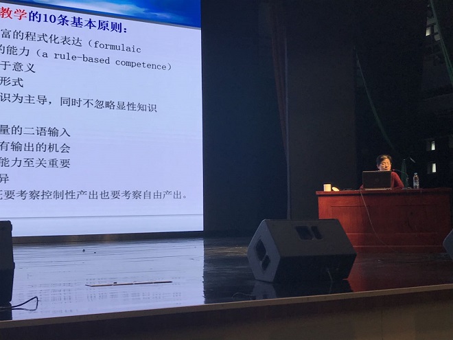 活动中,来自华中科技大学的徐锦芬教授利用案例教学法,对基础英语课堂教学视频内容进行点评,并结合理论加以说明。徐教授还主要介绍了外语教学方面目前比较前沿的理念:课堂二语习得理论。她对该理论的一些基本概念进行了讲解,并指出外语教师在教学实践中如何来应用这些先进的理念,并利用自己教学实践所积累的数据对这些理论作进一步的完善,以激发一线教师从事理论研究的兴趣。江南外语教学研究中心主任、91社区