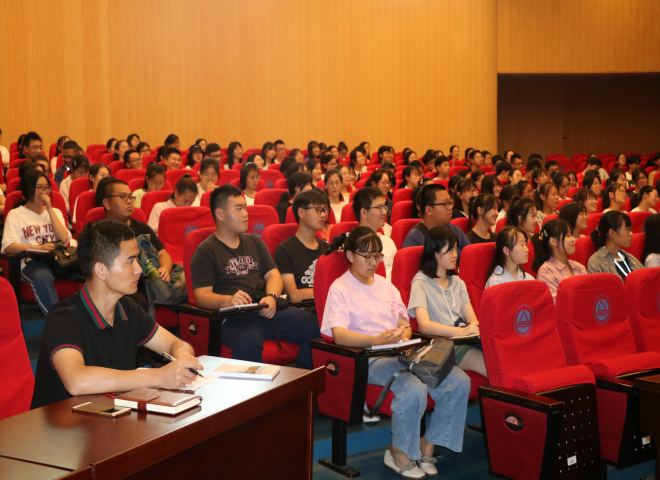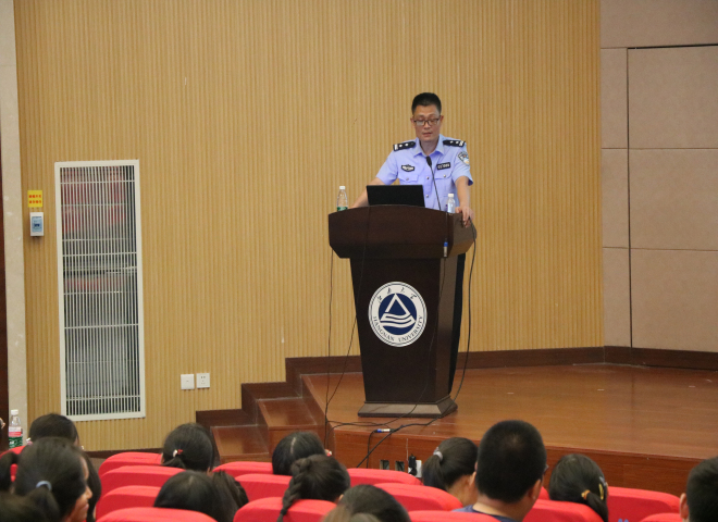 首先,滨湖区公安分局内保大队副大队长乔智勇通过防诈骗的方法、校园贷的危害以及毒品的危害给新生上了一堂安全教育课,过程中以实际案例为新生介绍了常见的诈骗手段以及预防诈骗的方式。然后,学院教学秘书王琰玲老师从“人才培养方案、学籍信息管理、选课与退课以及课程考核与评教”四个方面为新生进行学习管理指导。学院分团委书记杨艳老师为新生详细解读了学生手册,并介绍了学院的具体管理规定,让新生对学校、学院的管理制度有了深入的了解,同时19级辅导员苗文建老师也进行了新生注意事项说明。最后,院党委副书记刘伯贤老师进行大会总结,刘书记强调:进入大学后要尽快适应大学的学习生活,转变身份,转变认识,严格按照学校、学院的相关要求,成长为一名优秀的大学生。