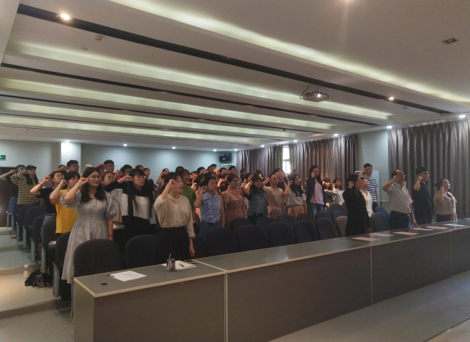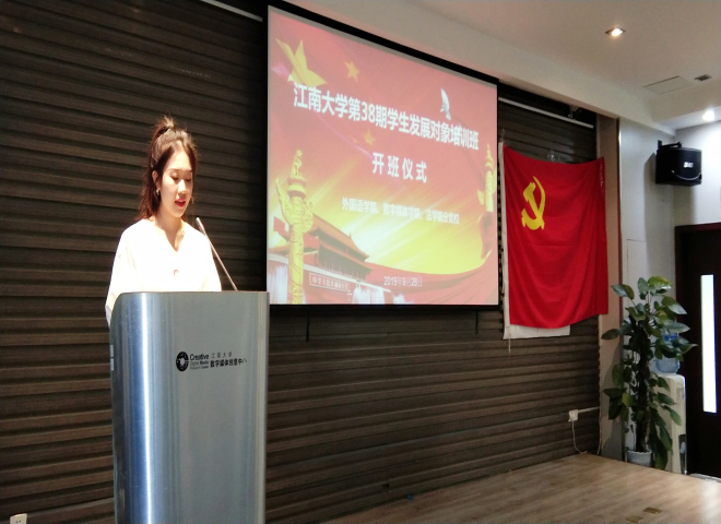 英语1701的胡自威同学作为上一期优秀学员代表发言。在总结了自己在第37培训班学习过程中的心路成长历程和分享了自己参加培训的感悟后,他表明中国共产党既有理论的深度,也有实践的厚度,并激励参加此次仪式的同学们应端正入党动机,认真学习理论知识,加强对党的理解,为成为一名合格的党员打下坚实的理论基础,争取早日加入党组织。随后,全体学员起立,面向党旗郑重宣誓。开班仪式在布置安排本期培训班的任务和具体要求后圆满结束。