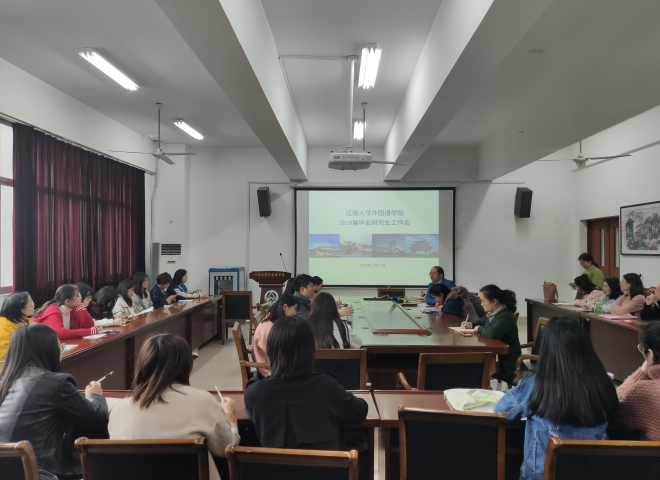 在A349会议室召开了2020届毕业研究生工作会。学院党委副书记、副院长刘伯贤,研究生副院长朱义华,分团委书记、研究生辅导员杨艳,研究生教务秘书王莉莉和全体毕业年级的研究生出席会议。