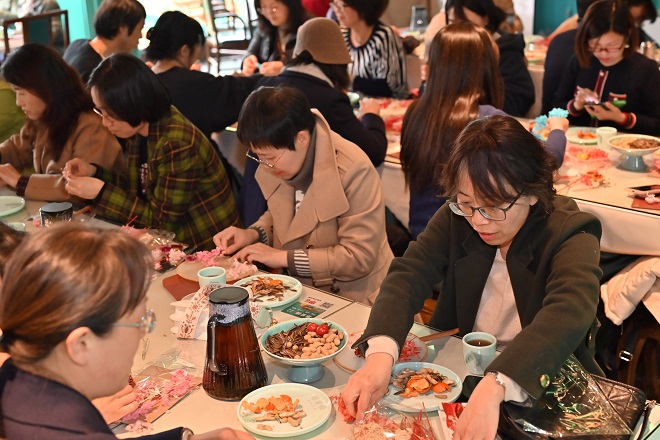 活动的第二个环节是手工制作团扇。团扇作为中国传统艺术品,深受广大女性的喜爱,在工作人员介绍了制作流程后,老师们开始自己动手,在一番精心的选材和设计后,一把把清新灵动的团扇“新鲜出炉”。
