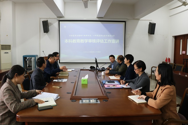 分管教学副院长顾琦一汇报了学院审核评估工作方案及工作进展。学院高度重视评估工作,快速进入状态,明确评估要求,制定评估方案,召开评估动员会议;各条线、系部结合实际工作准备并查找相关材料,结合近三年本科教学基本状态数据及一流大学目标制定自评问题清单,针对本科教育教学关键环节开展自查自评,根据评估指标体系收集整理基础数据资料及支撑材料。