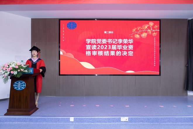 2023届毕业生毕业典礼暨学位授予仪式在学院君金报告厅隆重举行。毕业典礼由学院党委副书记刘伯贤主持。