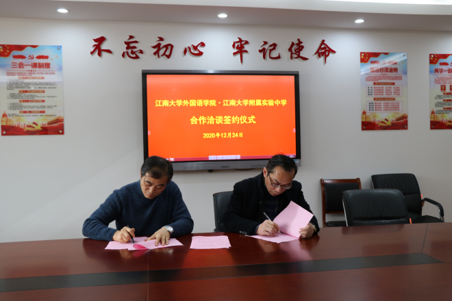 附属实验中学六楼会议室举行。学院院长方文开、党委副书记刘伯贤、副院长顾琦一、附属实验中学校长吴卫东、校党总支书记王星、副校长陈柏林参加了签约仪式。