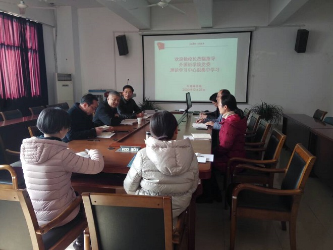 党委理论学习中心组在文科楼A349开展集中学习,徐岩副校长到会指导。