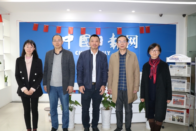 院长方文开、党委副书记刘伯贤、副院长顾琦一与中国日报网副总编辑兼无锡公司总编辑王政华、中国日报网无锡公司副总编辑施力维、中国日报网无锡公司人力主管戎咪咪、中国日报网无锡公司员工王娟(91社区