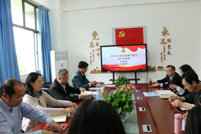 会议首先由学院党委史志洪书记给参会的同志领学了《习近平在党史学习教育动员大会上的讲话》相关精神。史书记从开展党史学习教育的教育意义、开展党史学习教育要突出的重点以及开展党史学习教育的相关要求进行了详细讲解。史书记希望本支部成员要切实按照学院党史学习教育的实施方案,树立正确的学习观,不断创新学习方法,在学习中要与解决工作难题相结合学,做到学以致用,用能见效,用实际行动传承党的红色基因。同时要求每个党员要对党史学习教育的认识要做到位,要树立正确的党史观,要目标明确、行动明确。要防止学习和工作两张皮,要以学习党史来推动工作,把学党史和大外教学、师资队伍建设等结合起来,开启学院发展的新局面。