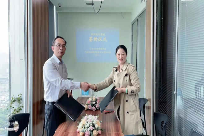 与无锡江达留学服务中心有限公司共建就业实习基地签约仪式,学院党委书记史志洪代表学院向江达留学授予“就业实习基地”铜牌。