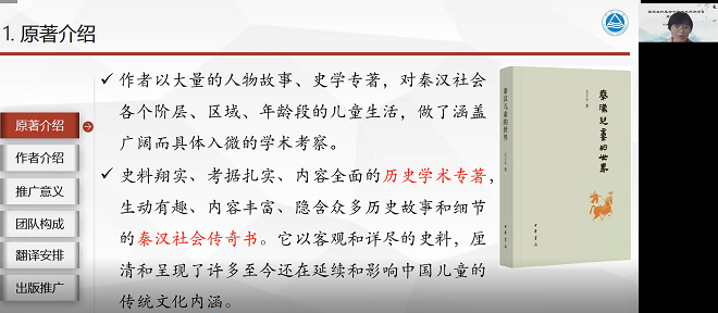 开题过程中,两位项目主持人先后详细介绍了翻译项目的原著与作者、原著的海外推广意义、翻译团队人员构成、翻译项目的进程安排与质量管理、以及海外出版推广计划等。